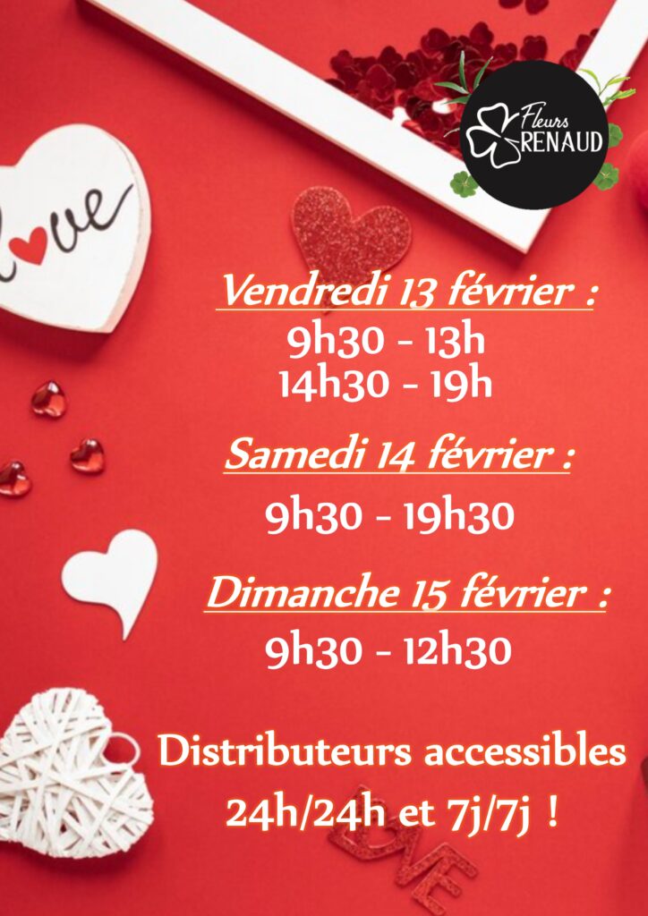 Retrouvez nos horaires pour la Saint Valentin :